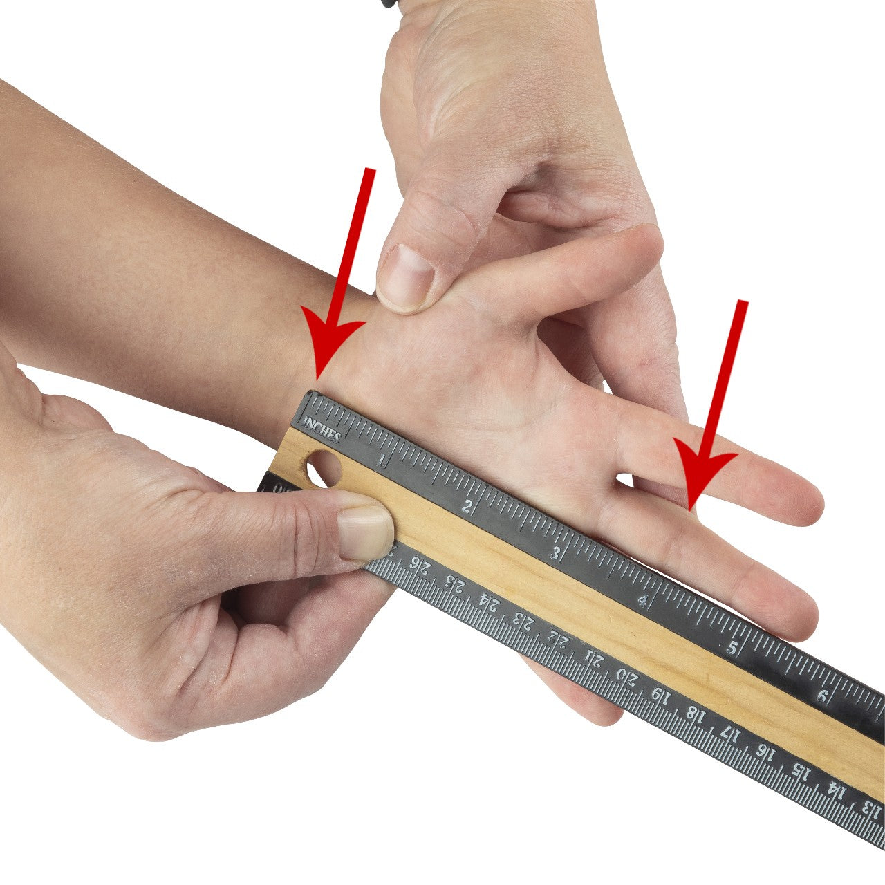 Align the ruler or measuring tape with the middle finger.